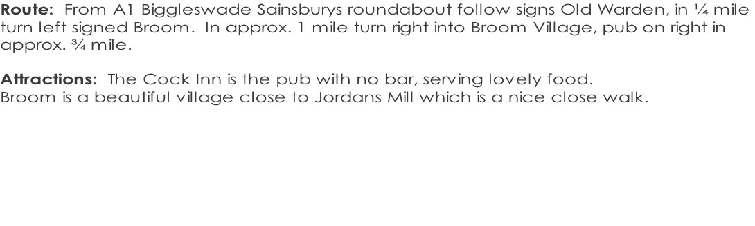 North London Centre of the  Caravan and Motorhome Club RALLY OFFICERS:  Phil and Helen Crouch, 07933428530  philipcrouch1@live.co.uk RALLY FEE: £28 RALLY OPENS: 2pm THE COCK, BROOM, SG18 9NA